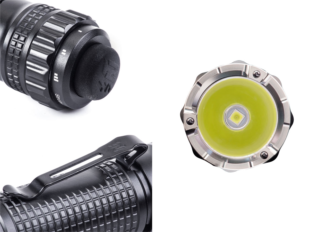 - Interruttore tattico sul tappo a doppia funzione per accedere a Momentary on oppure a Tactical Strobe