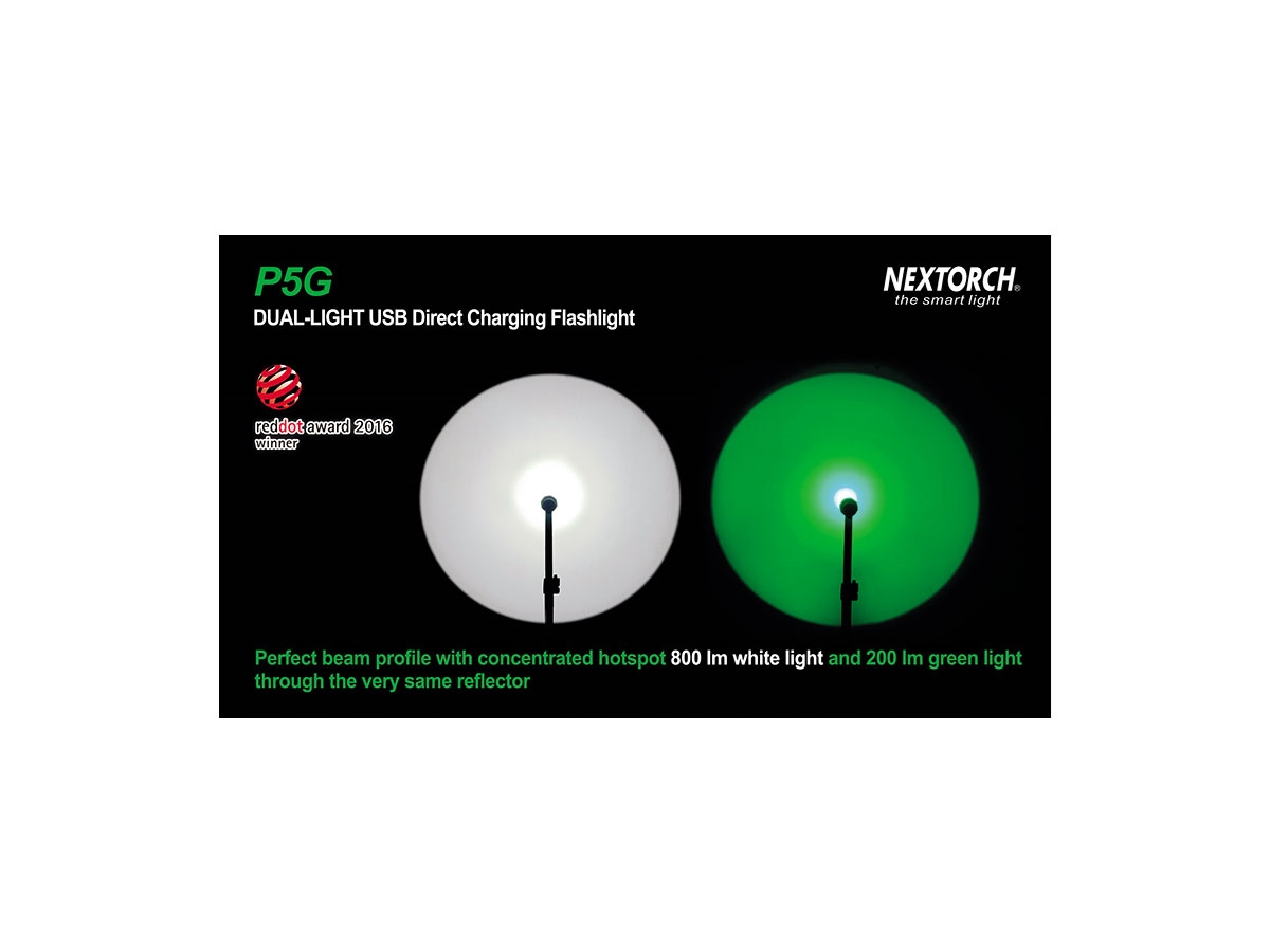 Nextorch P5G LED DUAL-LIGHT Ricaricabile (800 Lm WHITE- 200 Lm GREEN)