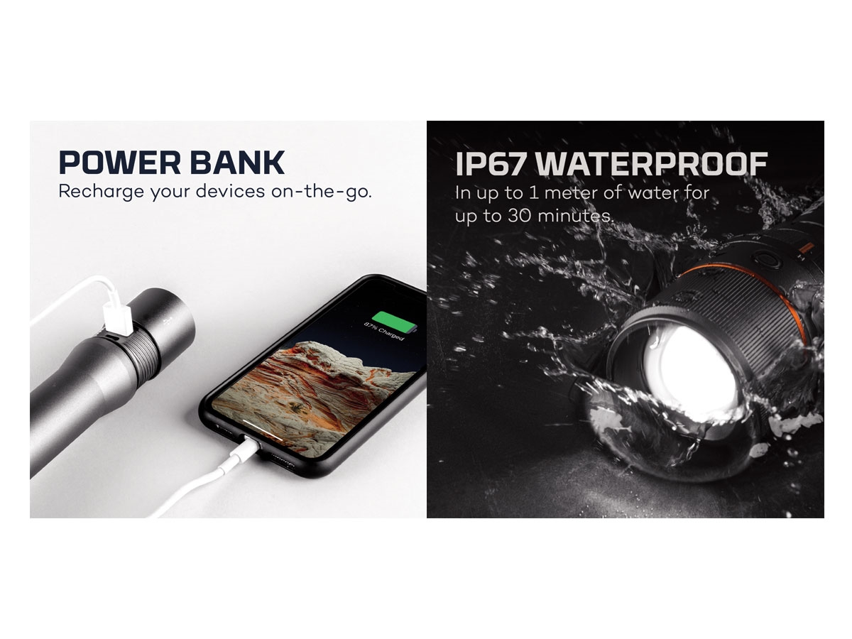 - 4 modalità di illuminazione - Completamente ricaricabile- Mode Select Dial (rende facile passare da una modalità all'altra)- Smart Power Control (crea una transizione senza interruzioni tra le modalità di  illuminazione per prolungare la durata della batteria)- Alluminio aeronautico anodizzato- Resistente all'acqua e alla polvere (IP67)- Zoom- Cavo di ricarica micro USB- Cordino staccabile