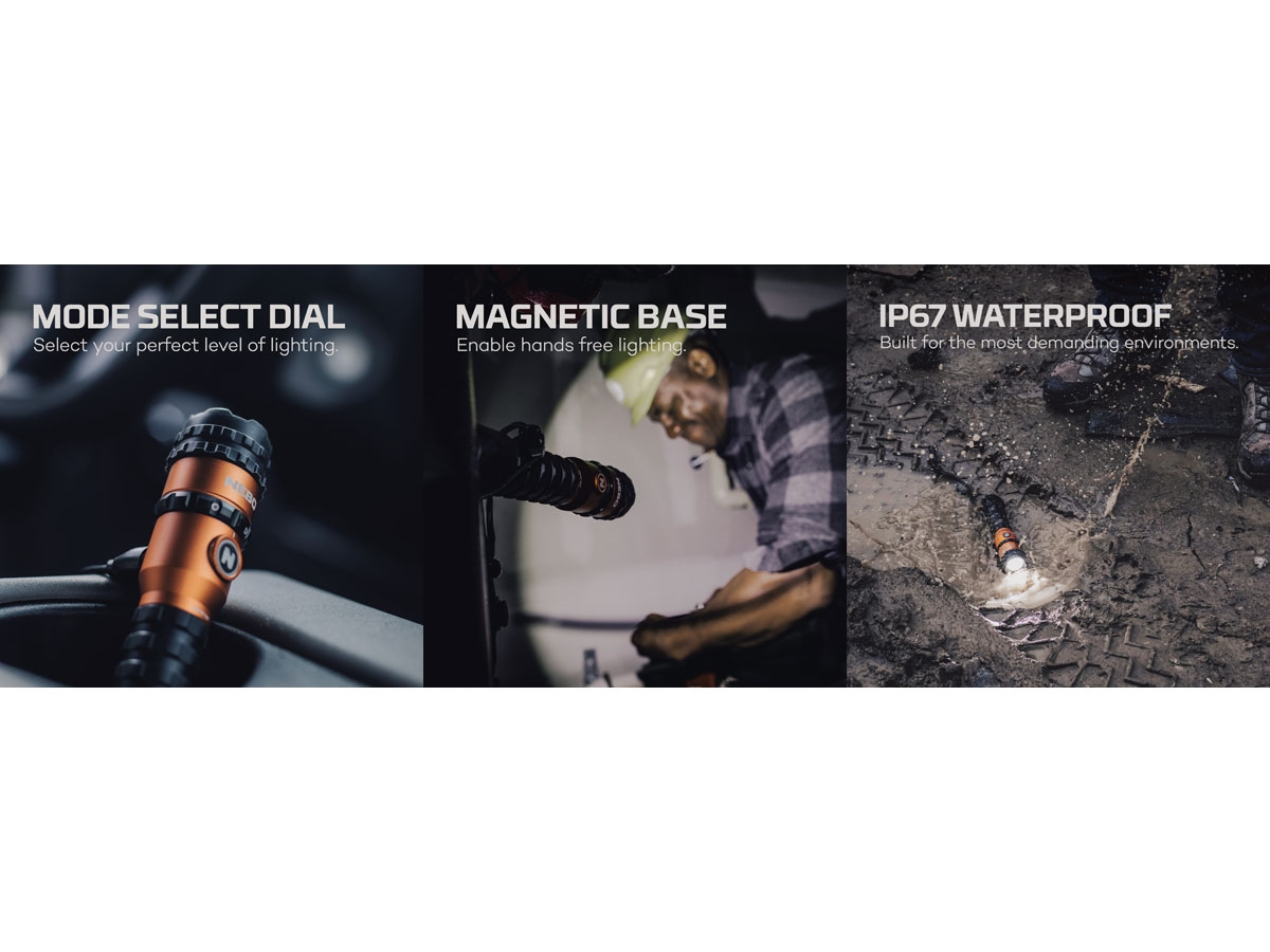 - Ricaricabile- Zoom 2x regolabile- Impugnatura ergonomica e gommata - Base magnetica - Indicatore LED di carica della batteria - Magnetic Mode Select Dial: ghiera magnetica per il passaggio tra una modalità e l'altra - Smart Power Control (SPC): utilizza in modo efficiente la potenza della batteria per fornire una luce costante - Optimized Power Curve: utilizza in modo efficiente la potenza della batteria per aumentarne la durata