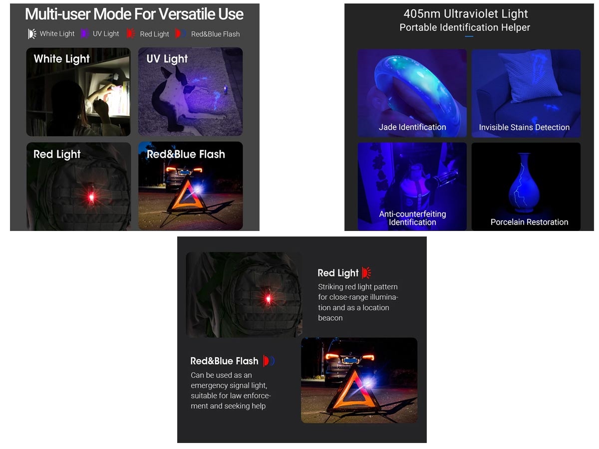 La torcia tattica P84 multifunzione riesce a soddisfare i requisiti di sicurezza e di segnalazione ed è adatta per vari scenari di illuminazione. Oltre alla potente emissione luminosa di 3000 lumens presenta un modulo sorgente di luce rossa e blu integrato, che consente un uso versatile attraverso 5 modalità commutabili. La corona di sfondamento in nano-ceramica, classificato in durezza solo dopo il diamante, può rompere le finestre in modo efficiente sia per il salvataggio che per l\'autodifesa.