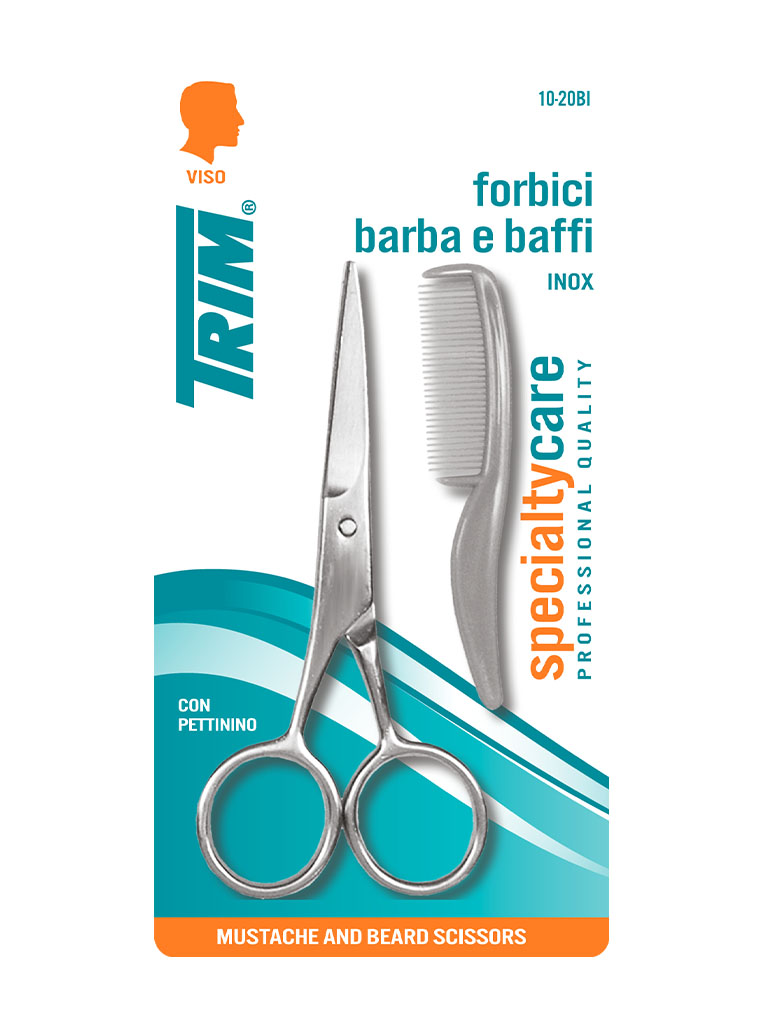 Forbici in acciaio INOX per barba e baffi dalle lame perfettamente affilate per tagli precisi e affidabili. Il pettinino aiuta a regolare la lunghezza di barba e baffi.