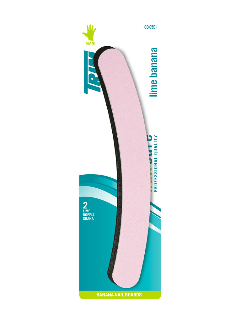 Le lime a banana TRIM sono progettate per offrire un'esperienza di limatura professionale e confortevole, grazie alla loro forma ergonomica che garantisce una maneggevolezza superiore e una maggiore flessibilità.• Doppia grana per ogni esigenza: Ogni confezione include due lime con grane differenti. La lima nera presenta una grana grossa e media, perfetta per modellare e accorciare le unghie, mentre la lima rosa offre una grana media e fine, ideale per rifinire e levigare le unghie per un risultato liscio e preciso.• Forma ergonomica a banana: La forma curva delle lime permette un controllo ottimale durante l'uso, adattandosi meglio alla forma naturale delle unghie, garantendo una limatura più uniforme e comoda.• Confezione da 2 lime: Ogni confezione contiene due lime con doppia grana, offrendo versatilità e durata nel tempo, adatte sia per uso personale che professionale.Le lime a banana TRIM sono lo strumento ideale per chi cerca precisione, comfort e flessibilità nella cura delle unghie. Grazie alla doppia grana e alla forma ergonomica, queste lime garantiscono risultati impeccabili e professionali.