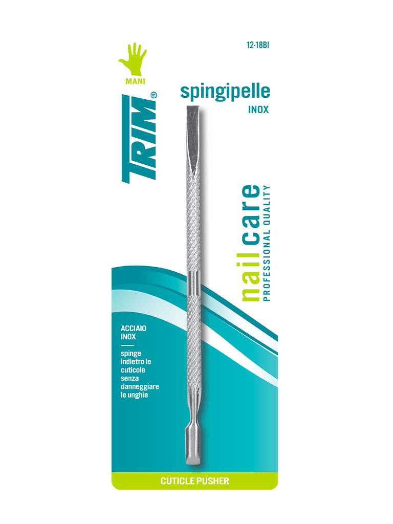 Spingipelle in acciaio INOX con due estremità, una piatta e l’altra arrotondata, e manico zigrinato che lo rendono pratico e confortevole all’uso.