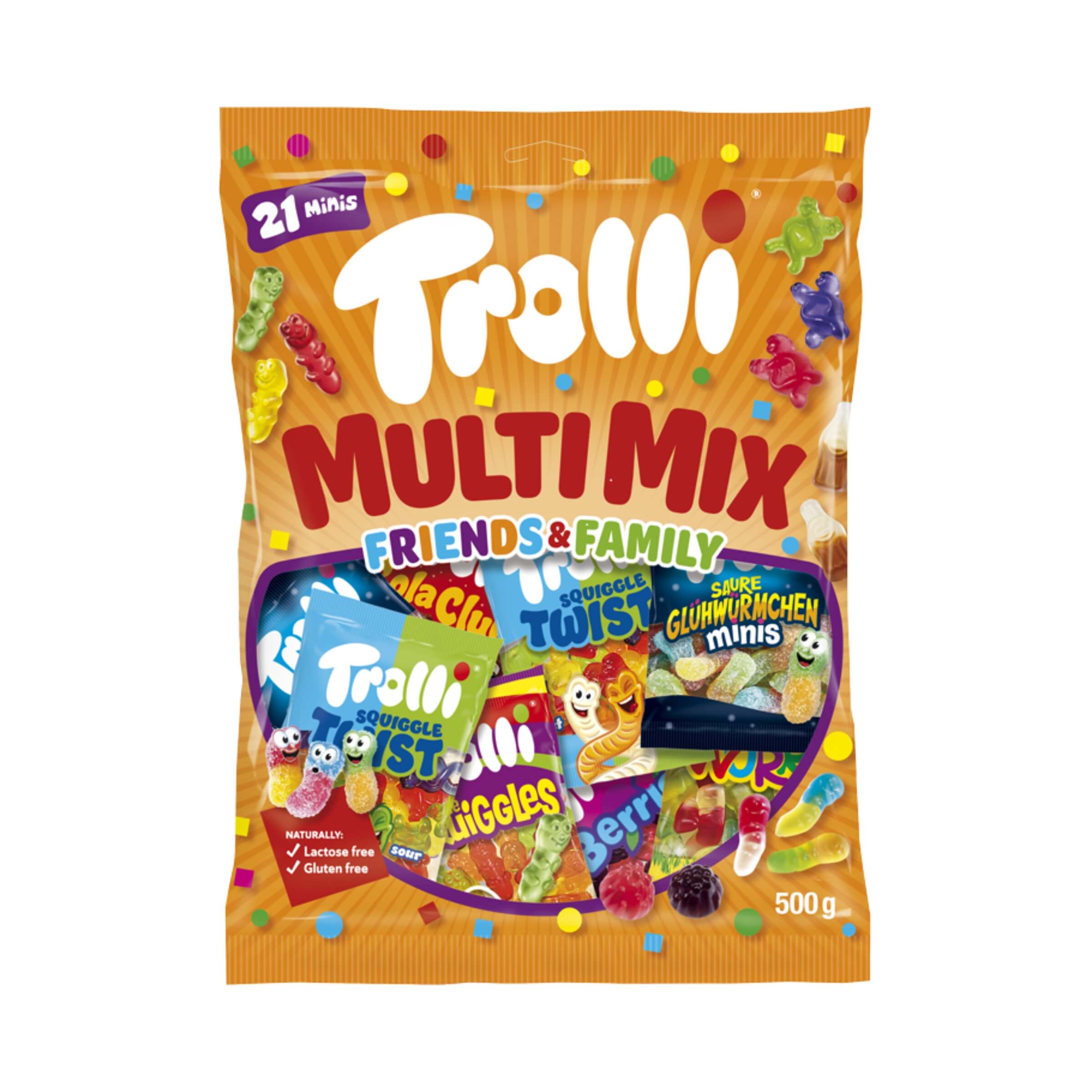 Che si tratti di un'emozionante serata di calcio o di cinema, di una festa divertente o semplicemente per godersi un momento di dolcezza: il Trolli Multi Mix Friends & Family offre il massimo del divertimento per ogni occasione. Questa confezione combina un mix di caramelle gommose senza lattosio e senza glutine, perfette per essere condivise con amici e familiari.