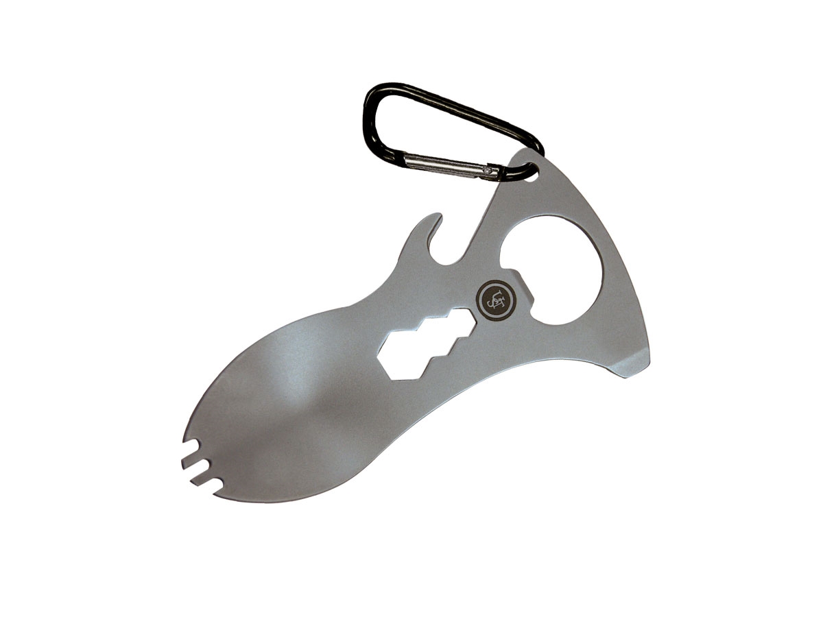 Forchetta - Cucchiaio - Cacciavite piatto - Leva - Chiave esagonale multidimensionale - Apribottiglia - Apriscatole - Moschettone