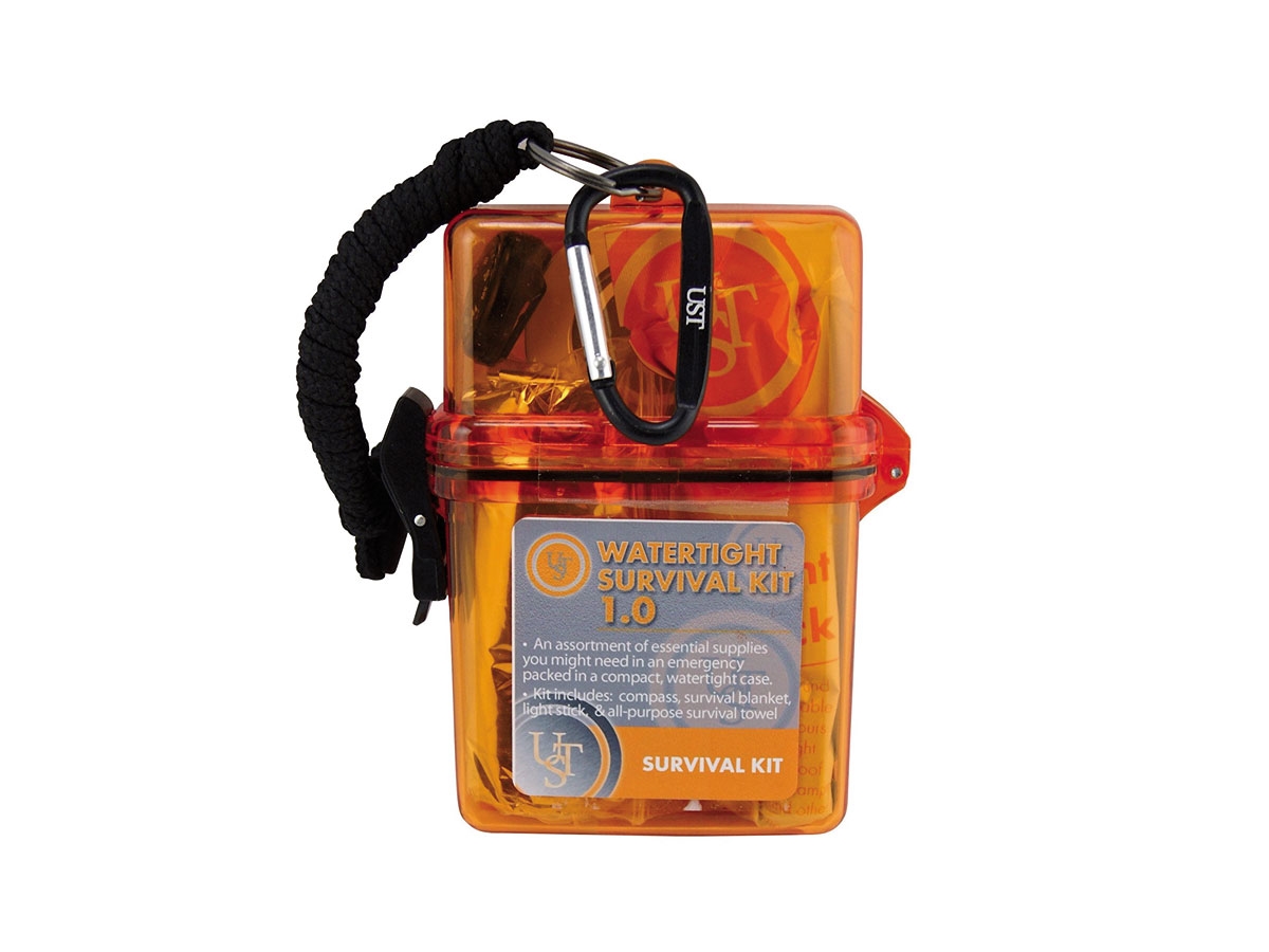 - Custodia in plastica a tenuta stagna con chiusura a scatto e cordino- Bastoncino da 4" che fornisce una luce incandescente- Coperta riflettente, impermeabile e antivento- Telo assorbente-  Bussola a bottone con punti di navigazione luminosi