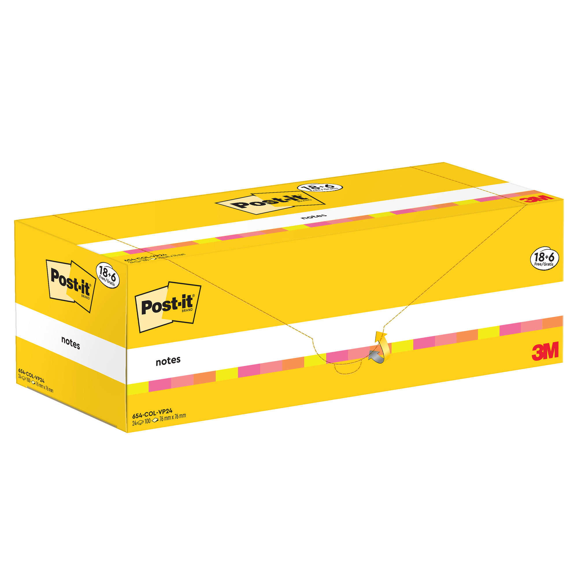 Cf. 24pz blocco 90fg. Post-it Super Sticky 76x76mm 654-COL-VP24 colori ass.