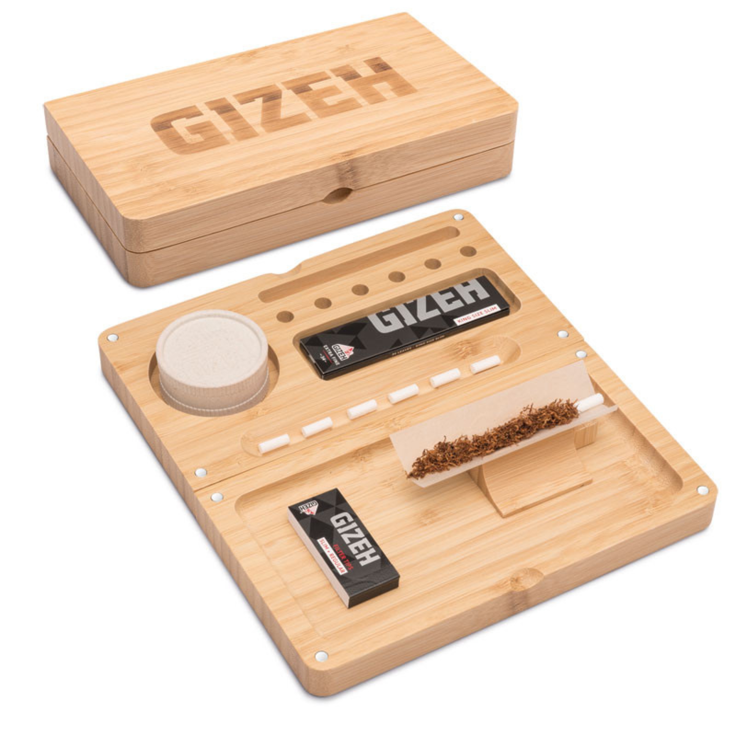 Il "GIZEH Magnetic Bamboo Tray" è il compagno ideale per gli appassionati di sigarette fatte a mano. Con il suo design intelligente e materiale di alta qualità, offre una soluzione pratica e stilosa per la preparazione dei tuoi joint.• Design Innovativo: Dotato di una doppia base in bambù con sistema di apertura magnetico e scomparti specifici per ogni accessorio. Include un posa-joint integrato, per una maggiore comodità durante l'uso.• Materiali di Alta Qualità: Realizzato interamente in bambù di ottima fattura, questo vassoio non solo è robusto e durevole, ma anche ecologico e visivamente attraente.• Praticità e Sicurezza: La base rotante si blocca magneticamente, rendendo facile l'organizzazione di coni, carta, grinder e tabacco. I magneti al neodimio garantiscono una chiusura sicura e stabile.• Dimensioni Compatte: Misura chiuso circa 24 x 12,7 x 4,6 cm, il che lo rende portatile e discreto. Perfetto per essere utilizzato a casa o portato in viaggio.Il "GIZEH Magnetic Bamboo Tray" non è solo un oggetto funzionale, ma anche un'aggiunta elegante per qualsiasi appassionato di sigarette fatte a mano, garantendo una preparazione pulita e organizzata.