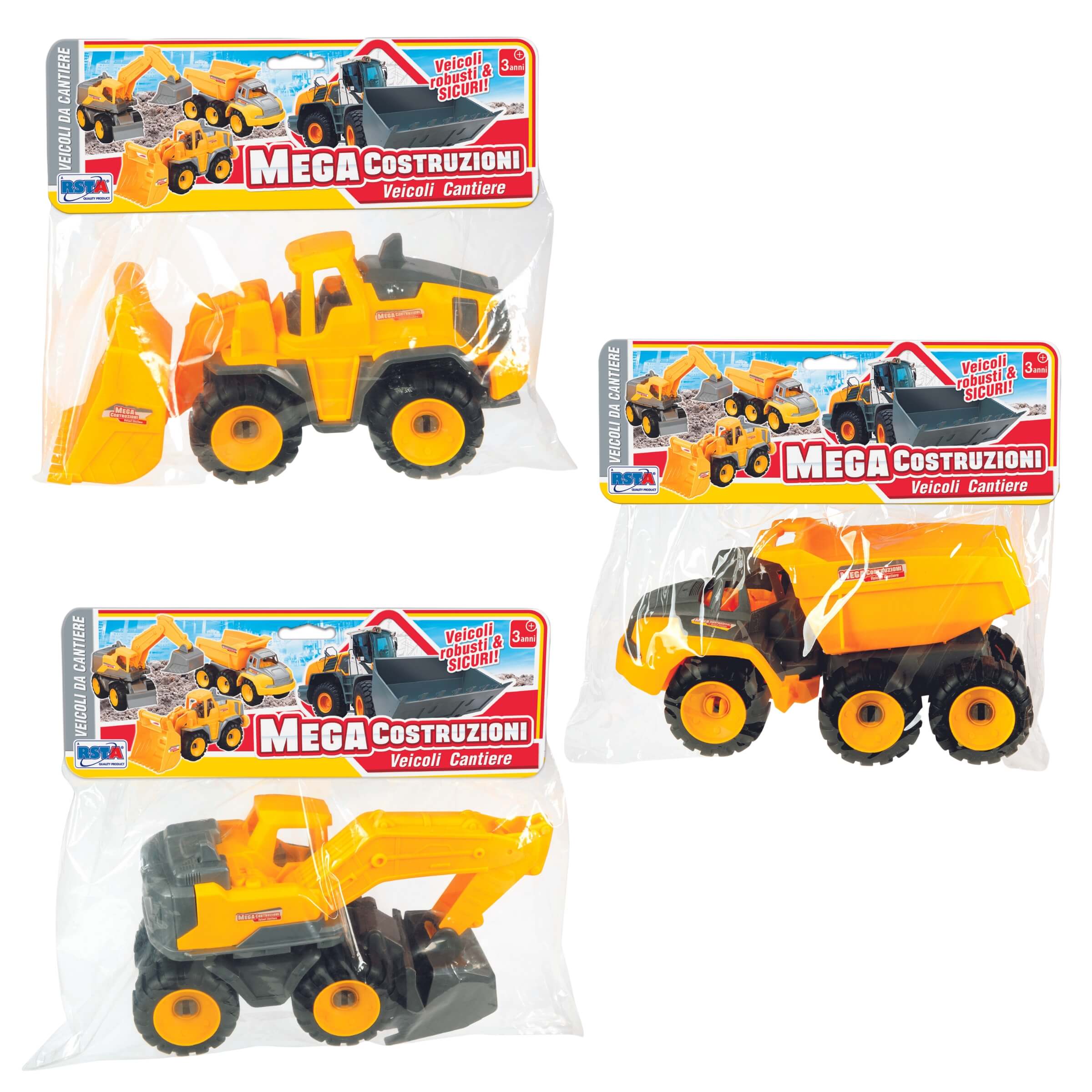 Immergiti nel mondo delle costruzioni con i veicoli Mega Costruzioni! Questi modelli di veicoli da cantiere in busta sono progettati per scatenare l'immaginazione dei piccoli ingegneri con ore di gioco creativo e divertente.• Dimensioni Generose: Ogni veicolo ha una lunghezza di 25 cm, offrendo una presa facile e un gioco d'azione realistico.• Robusti e Sicuri: Costruiti per durare, questi veicoli sono realizzati in plastica resistente, senza ftalati, garantendo la sicurezza durante il gioco.• 3 Soggetti Differenti: La serie comprende tre diversi veicoli da cantiere, permettendo ai bambini di scegliere tra un assortimento di macchinari per espandere la propria flotta da costruzione.• Stimolazione Educativa: Perfetti per lo sviluppo della coordinazione motoria e dell'apprendimento del lavoro di squadra, questi veicoli da cantiere incoraggiano il gioco di ruolo e la comprensione delle meccaniche di base.• Ideale per Bambini dai 3 Anni in Su: Con la loro robustezza e la mancanza di piccole parti, questi veicoli sono adatti per bambini dai tre anni in su, fornendo un ambiente di gioco sicuro e adatto all'età.Divertimento in Cantiere con Mega Costruzioni!Che il tuo piccolo costruttore preferisca guidare un camion, operare un escavatore o gestire un dumper, i veicoli Mega Costruzioni sono il complemento perfetto per ogni cantiere di giochi. Prepara il terreno per avventure grandiose con questi fantastici mezzi di costruzione!