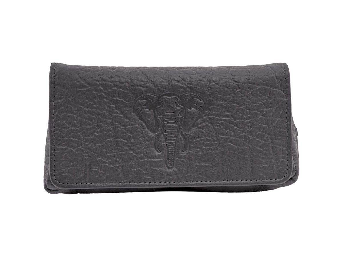 Borsa per 1 pipa realizzata con una resistente pelle bovina Loxo, che assomiglia molto alla vera pelle di elefante ed è quasi altrettanto resistente. Naturalmente, in grigio elefante. La custodia combinata con la testa di elefante profondamente incisa non è solo bella da vedere, ma si rivela anche un compagno ben studiato e compatto, con numerosi scomparti per pipe, accessori e tabacco, e dispone inoltre di due pratiche chiusure magnetiche cromate.