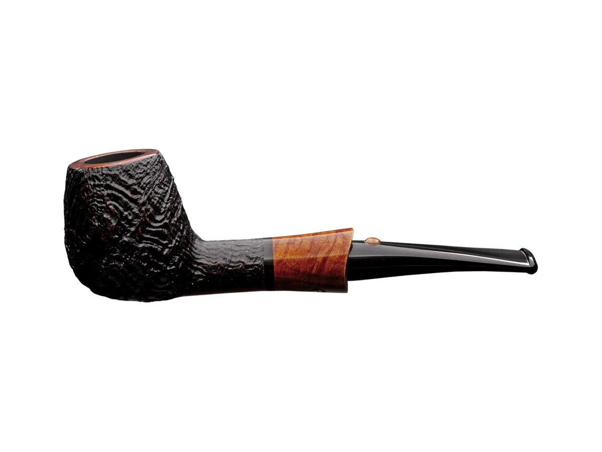 Stile: Serie Classica Materiale: erica Superficie: sabbiata Bocchino: acrilico Fornello: 9mm Anello: Bruyere