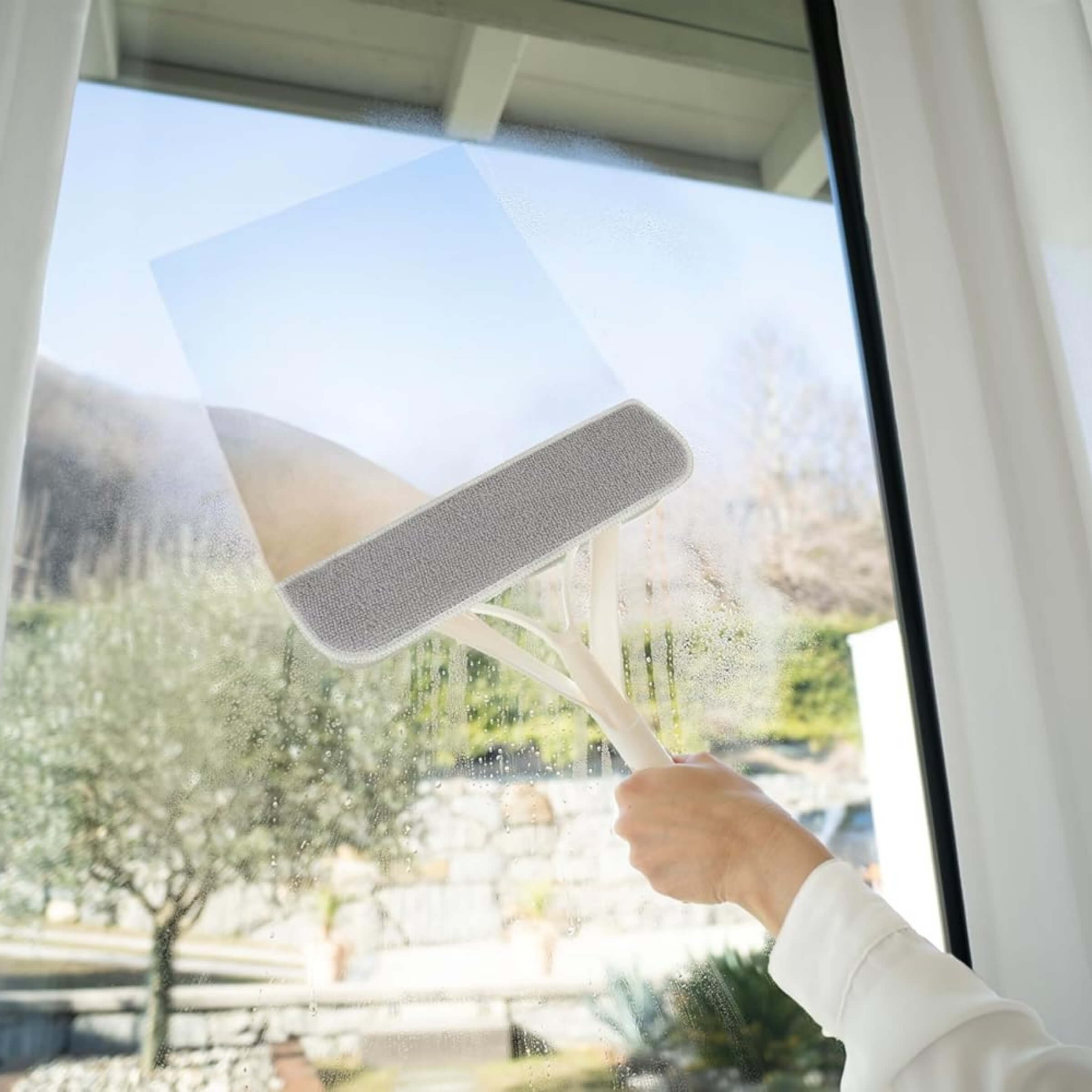 White Glass è progettato per rendere la pulizia di vetri, specchi e superfici lucide un gesto semplice e preciso, grazie a un sistema completo che unisce lavaggio, asciugatura e rimozione dell’acqua in un unico strumento. La struttura leggera ma stabile facilita i movimenti, mentre la testa larga in microfibra avvolge la superficie in modo uniforme migliorando l’efficacia di ogni passaggio. L’impugnatura ergonomica consente di lavorare con naturalezza senza affaticare polsi e braccia, mentre il manico estensibile fino a un metro permette di raggiungere anche le zone più alte senza scala. La combinazione delle due microfibre incluse e della lama tira acqua in gomma morbida crea una soluzione pratica e versatile per vetri interni, finestre esterne, specchi da bagno, cristalli e box doccia.• Microfibra riccia: La microfibra riccia è studiata per il lavaggio profondo, con fibre compatte che intrappolano lo sporco e lo rimuovono anche con l’uso della sola acqua, offrendo un lavaggio rapido ed efficace.• Microfibra liscia: Il panno liscio permette un’asciugatura uniforme senza lasciare aloni, grazie a una trama leggera che distribuisce l’umidità in modo controllato e rende la superficie brillante.• Tira acqua integrato: La lama in gomma morbida elimina l’acqua residua con un movimento fluido evitando striature. Una volta sganciato dal manico diventa un accessorio manuale ideale per vetri piccoli e box doccia.• Manico estensibile: Il manico in tre sezioni si estende fino a un metro e consente di raggiungere superfici alte senza sforzo, garantendo stabilità e facilità di utilizzo anche durante movimenti più ampi.• Facilità di manutenzione: Entrambe le microfibre possono essere lavate in lavatrice a 30 gradi, permettendo un uso prolungato senza perdita di efficacia e mantenendo la qualità delle fibre nel tempo.• Utilizzo versatile: Il sistema 3 in 1 è adatto a vetri, specchi, cristalli, superfici laccate e box doccia, rendendo il kit un accessorio funzionale per ogni ambiente domestico.White Glass unisce praticità e precisione in un unico strumento pensato per ottenere superfici luminose e uniformi con gesti naturali e senza fatica. La qualità delle microfibre, la comodità del tira acqua e la leggerezza del manico estensibile trasformano la cura dei vetri in un’operazione ordinata e piacevole.
