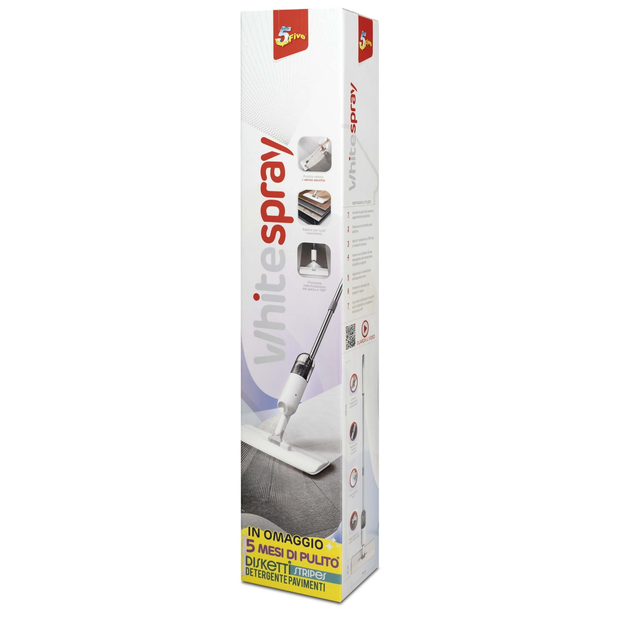 White Spray offre una soluzione moderna e funzionale per chi desidera una pulizia rapida senza rinunciare alla qualità del risultato finale. La leggerezza del sistema, unita alla praticità del serbatoio nebulizzatore e alla qualità del mop in microfibra, permette di trasformare la routine domestica in un’attività più fluida, precisa e immediata. Il kit è pensato per durare e accompagnare nel tempo tutte le esigenze di pulizia quotidiana, mantenendo i pavimenti luminosi e curati con il minimo sforzo.