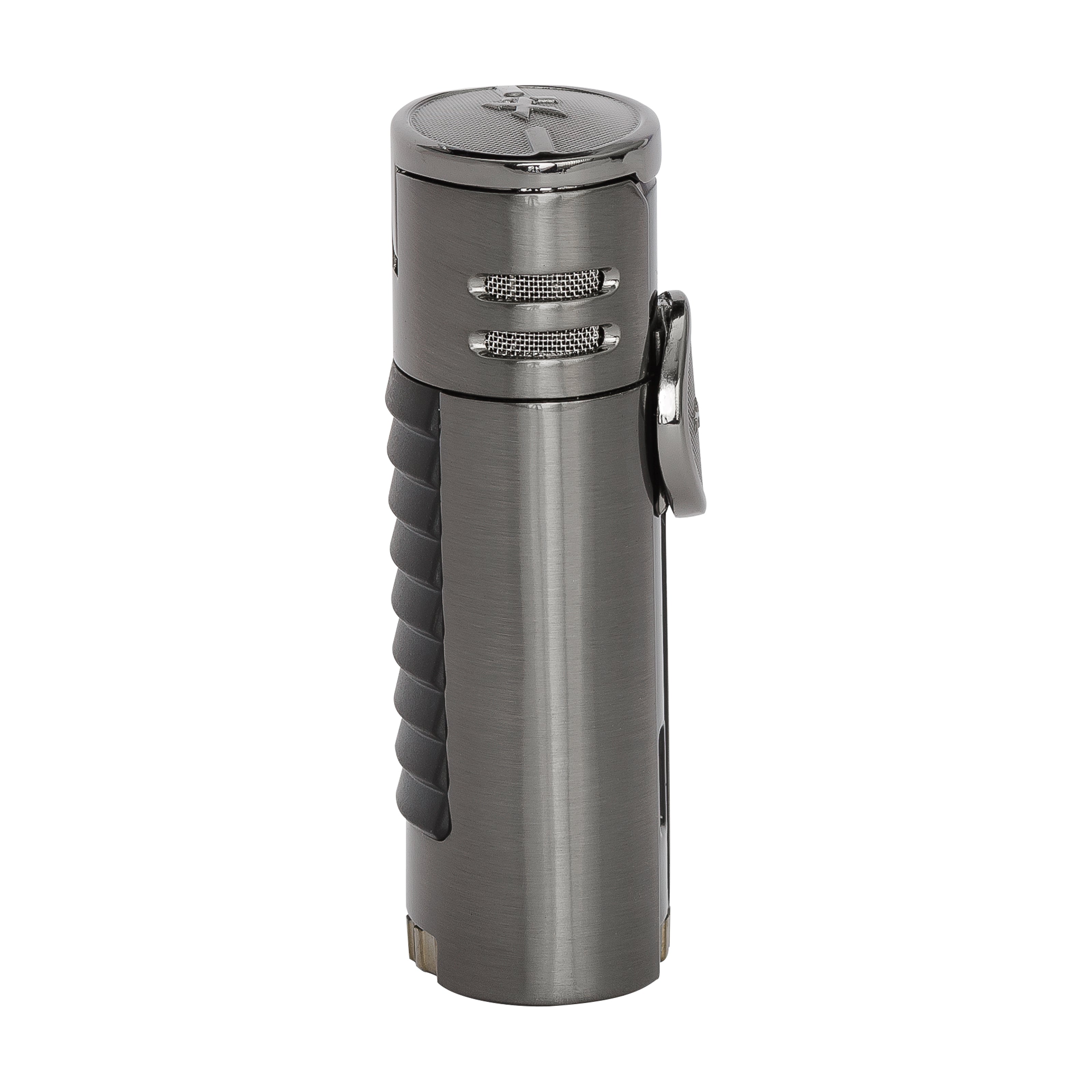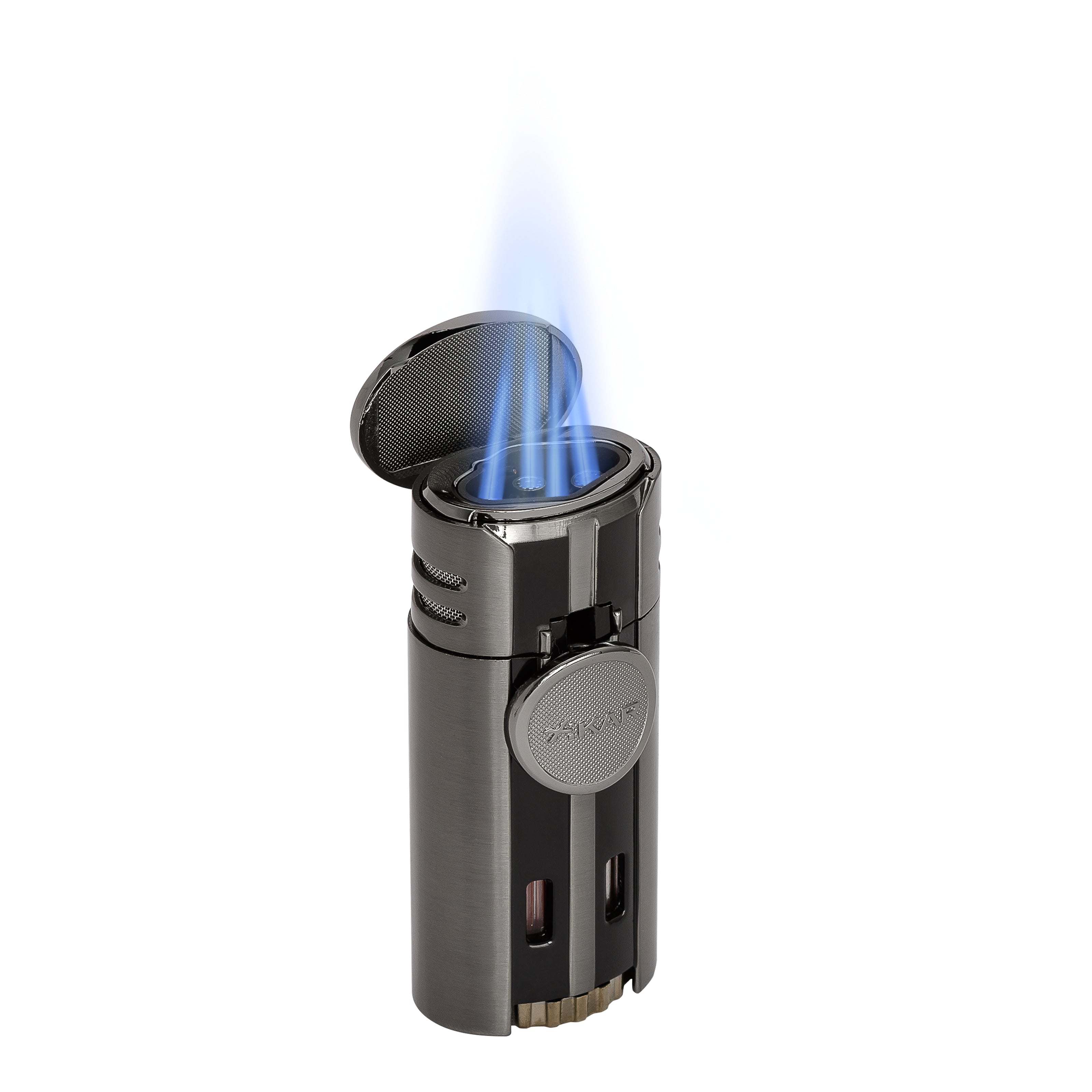Il coperchio flip-top non solo protegge i jet quad, ma si ritrae di oltre 90 gradi garantendo spazio in abbondanza per accendere sigari piccoli e grandi. Il controllo del gas è facilitato da una doppia finestra  EZ-View.