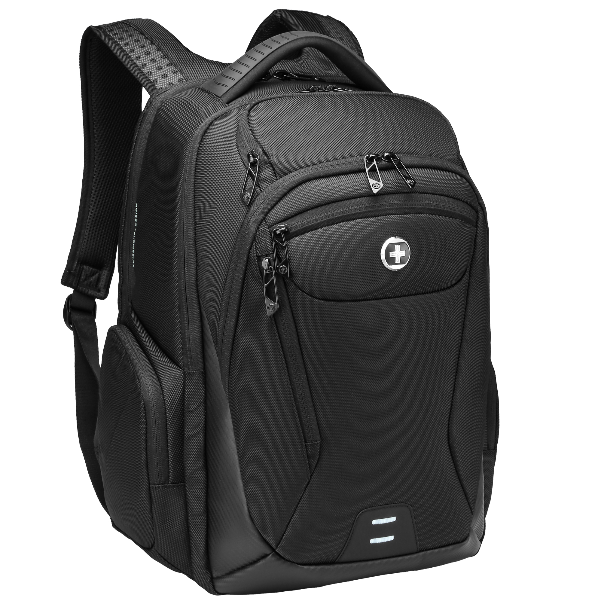 ZAINO DOTATO DI NUMEROSI COMPARTIMENTI RIGIDI E IMBOTTITI, IDEALI PER OSPITARE LAPTOP, TABLET E RELATIVI ACCESSORI. SVARIATE TASCHE SUPERIORI E FRONTALI, TASCA PER OCCHIALI.